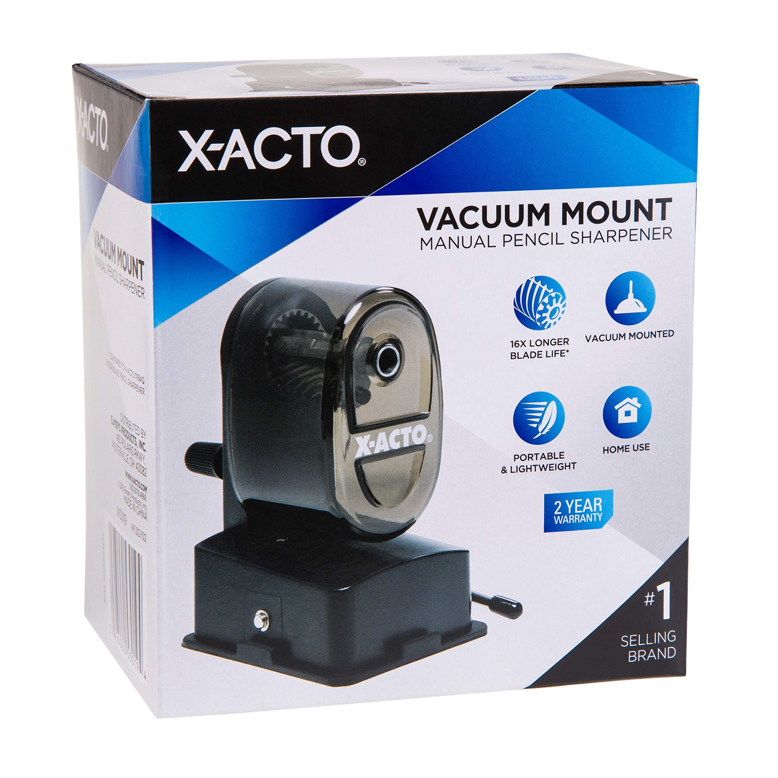 X-ACTO Bulldog Manual Pencil Sharpener w/Vacuum Mount, Colors May Vary, 1 Count
