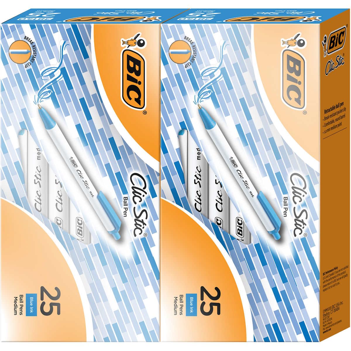 BIC Clic Stic Retractable Ballpoint Pen, Medium Point 1.0mm - 50 Count (Blue)