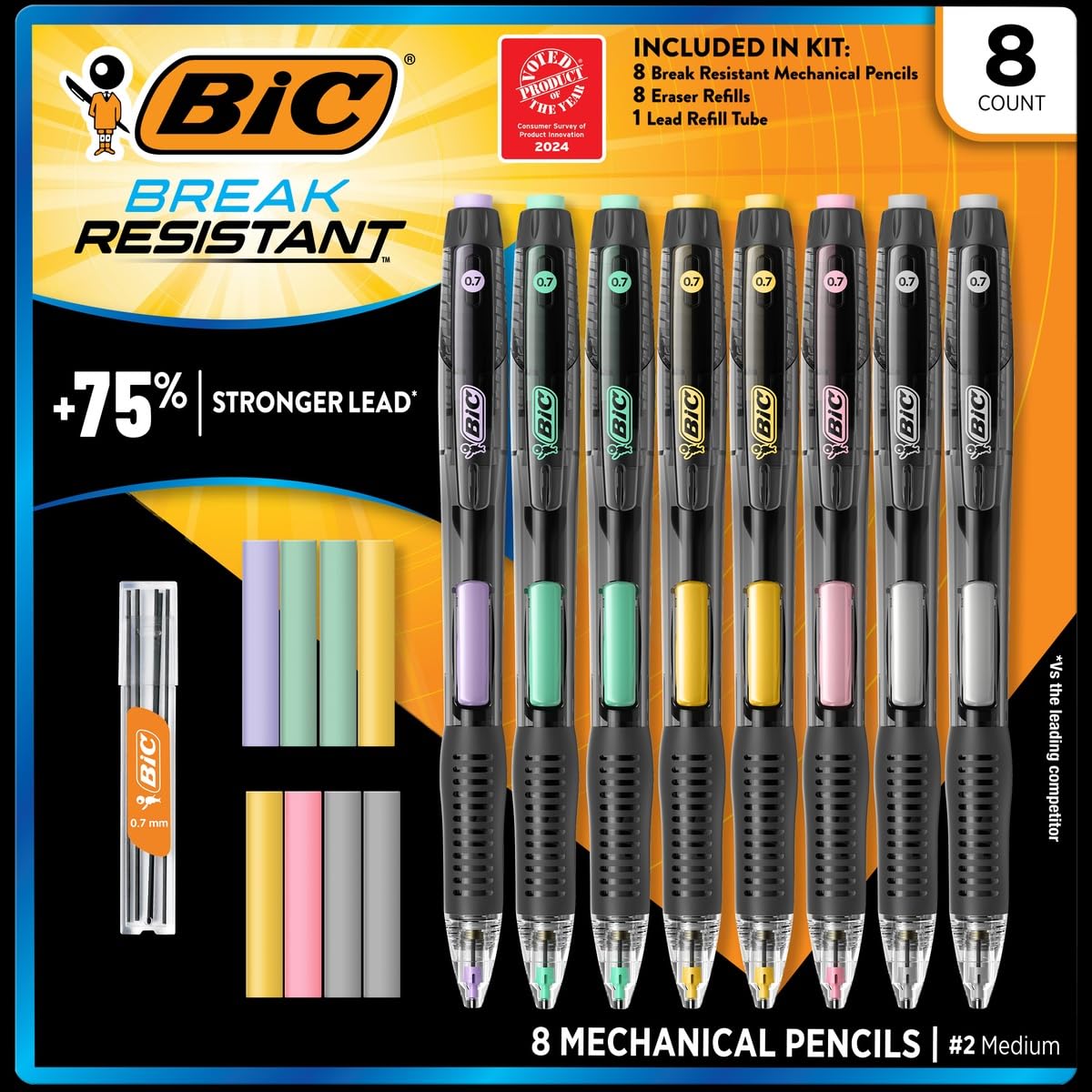 BIC Break Resistant Mechanical Pencils with Lead and Eraser Refills, 0.7 mm, 8 ct