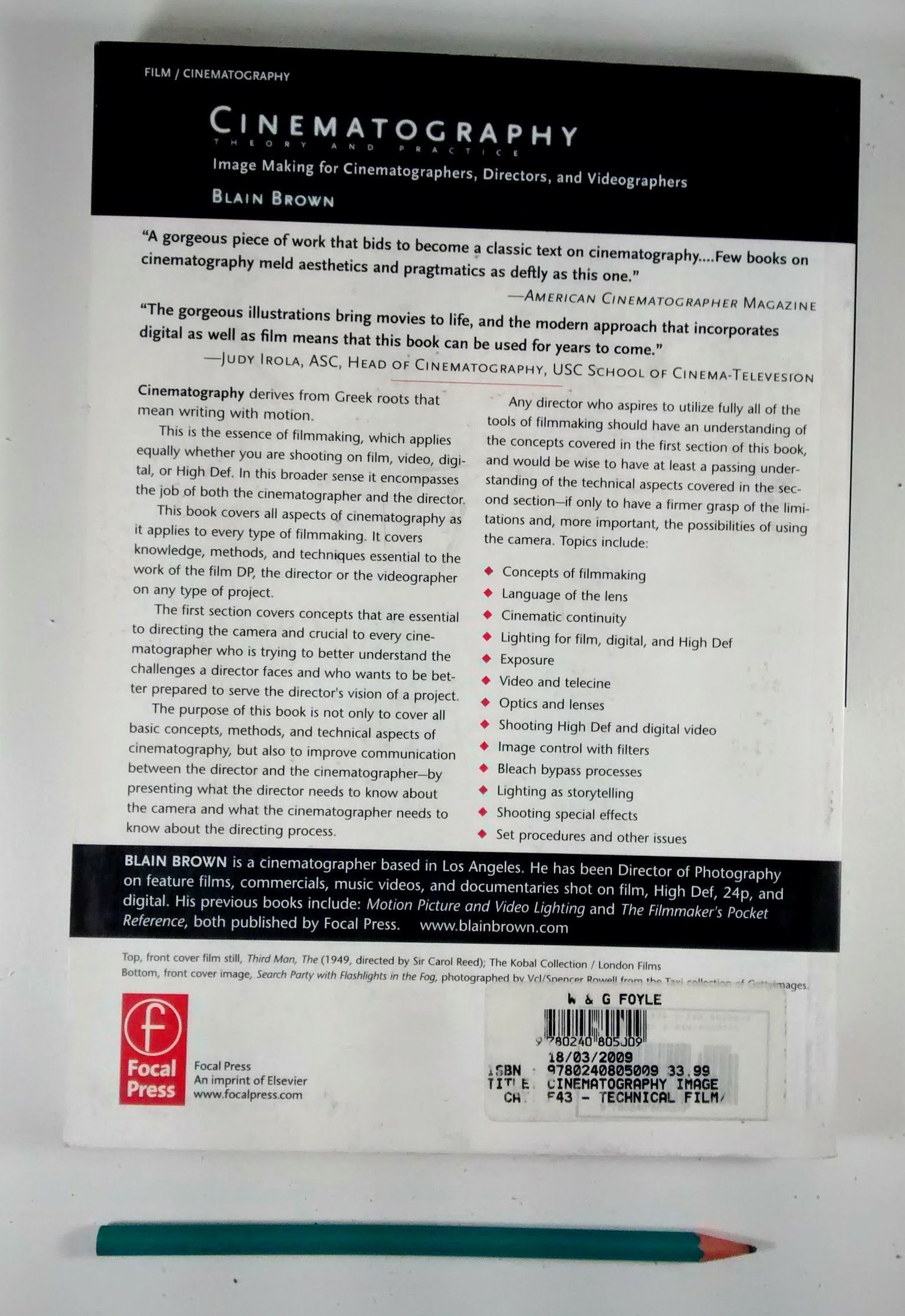 Cinematography: Theory and Practice: Image Making for Cinematographers and Directors (Volume 1)