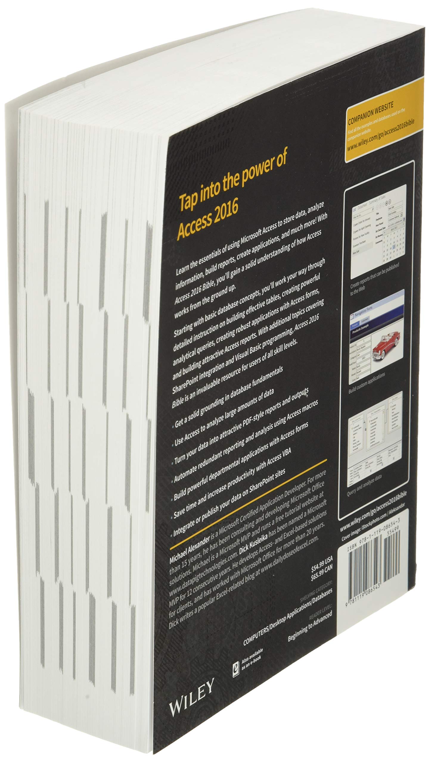 Details: Master database creation and management Access 2016 Bible is your, comprehensive reference to the world's most popular database management tool. With clear guidance toward everything from the basics to the advanced, this go-to reference helps you take advantage of everything Access 2016 has to offer. Whether you're new to Access or getting started with Access 2016, you'll find everything you need to know to create the database solution perfectly tailored to your needs, with expert guidance every step of the way. The companion website features all examples and databases used in the book, plus trial software and a special offer from Database Creations. Start from the beginning for a complete tutorial, or dip in and grab what you need when you need it. Access enables database novices and programmers to store, organize, view, analyze, and share data, as well as build powerful, integrable, custom database solutions � but databases can be complex, and difficult to navigate. This book helps you harness the power of the database with a solid understanding of their purpose, construction, and application. Understand database objects and design systems objects Build forms, create tables, manipulate datasheets, and add data validation Use Visual Basic automation and XML Data Access Page design Exchange data with other Office applications, including Word, Excel, and more From database fundamentals and terminology to XML and Web services, this book has everything you need to maximize Access 2016 and build the database you need.